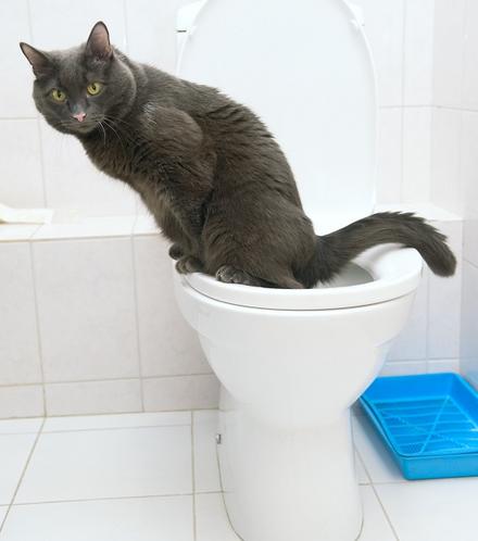 Самый сложный для кота шаг. Теперь нужно подальше убрать лоток, желательно вообще унести его за пределы квартиры, чтобы кот не нашел его по запаху. Когда ваш питомец уже по привычке, запрыгнув на унитаз, будет шокирован отсутствием лотка, но ему ничего не останется, как сделать то, чего мы и добиваемся. Внимание! Если метод убирания лотка не сработал – верните лоток снова на унитаз и попробуйте еще раз. Если опять не получится, попробуйте в центре лотка вырезать небольшое отверстие, затем увеличивать его, пока не останутся одни бортики. Приучившись ходить в такой лоток, кот практически не заметит его отсутствия, когда вы уберете бортики. Задача выполнена!