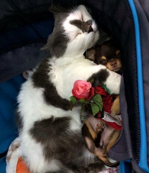 5-летний кот по кличке Ричи живет в Юте в доме вместе с 7 собаками. Он очень любит своих друзей собак, ухаживает за ними и всегда рядом.