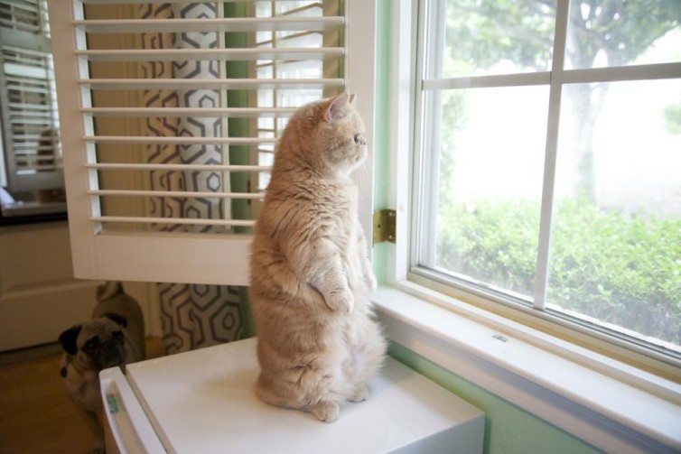 Смешной кот из Техаса по кличке Джордж, который любит стоять на задних лапах, стремительно набирает популярность в соц сетях. У Джорджа даже есть свой сайт, а также аккаунты в Instagram, Facebook, Twitter и канал на YouTube.